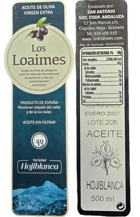 Aove monovarietal de hojiblanca. Sin filtrar, con una acidez máxima de 0.2º. Siendo un aceite frutado, aromático, leve sabor amargo para continuar con un ligero toque picante en garganta y regusto final almendrado. Para cualquier uso culinario; especialmente indicado para su consumo en crudo, aderezando ensaladas, desayunos y bocadillos. Según numerosos estudios demuestran que un consumo diario de aceite de oliva reduce el riesgo a padecer enfermedades cardiovasculares, neurodegenerativas y el cáncer. Aceite de oliva, fuente de vida.